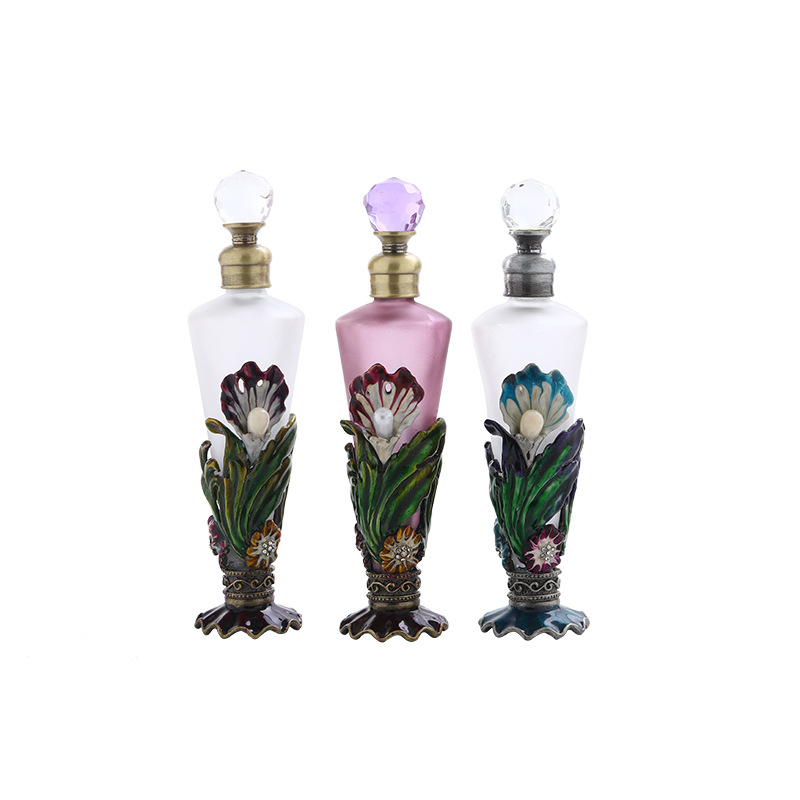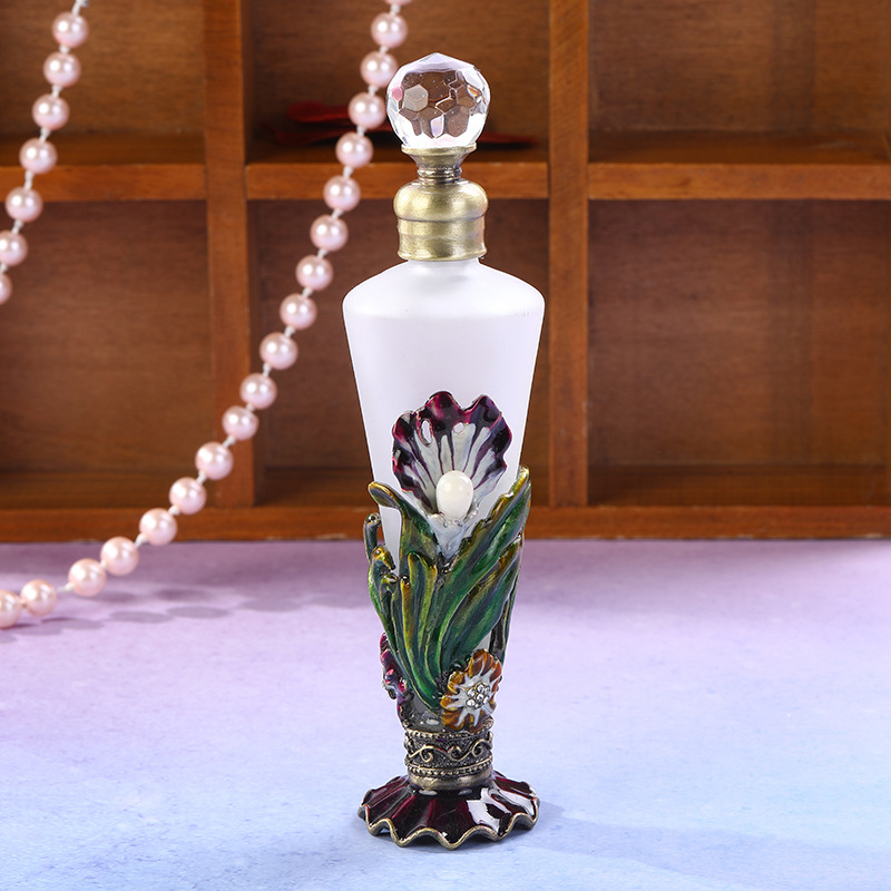 Flower pattern pearl decoration conical perfume bottle